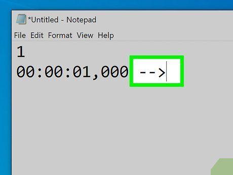 Type --> immediately after the start time. Type two hyphens and a greater-than symbol to separate the start and end times of the subtitle.