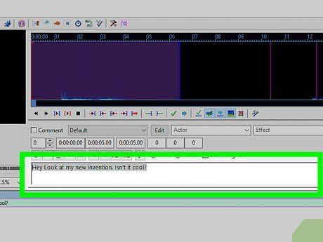 Type the subtitle into the text box. Use the text box below the audio panel to enter subtitles for the highlighted audio section.