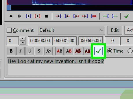 Click the checkmark icon. This green checkmark icon is located above the text box. This step saves the subtitle and creates a new entry for the next subtitle.