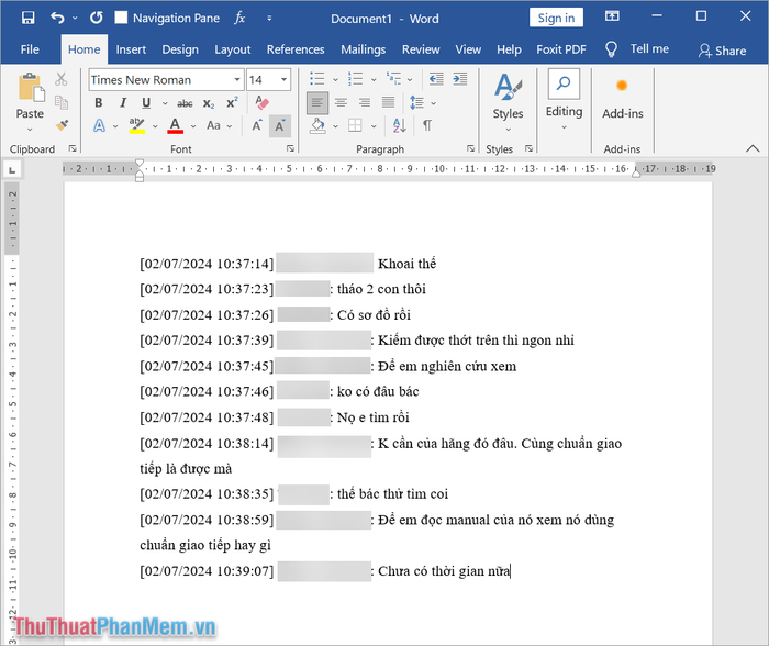 Step 4: Next, open Word and press the Ctrl + V shortcut to paste the content you copied from Zalo into the Word document. This completes the process of quickly transferring your Zalo messages into a Word file.