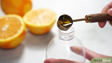 Mix with Castile soap. You can create an effective and eco-friendly cleaning solution by combining orange essential oil with Castile soap. Simply add 1 teaspoon of orange essential oil to a bottle of Castile soap, and you'll have a fantastic all-purpose cleaner. Castile soap is made from vegetable oils, not chemicals, making it safe for sensitive skin and biodegradable.