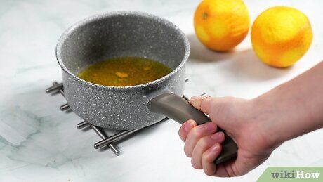 Heat the oil and orange peel. Place the grated orange peel in a small saucepan and pour in the oil. Heat the saucepan over medium heat for about 5 minutes or until the oil starts to bubble. Don't overheat to avoid burning the oil and orange peel, which would ruin the flavor.