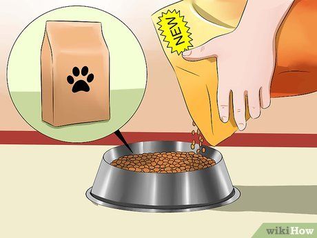 Gradually adjust your dog's food. When switching your dog to a new brand of food, start by mixing a small amount of the new food with their current food. Over the course of 1-2 weeks, gradually increase the amount of the new food while reducing the old food until your dog is eating only the new food.