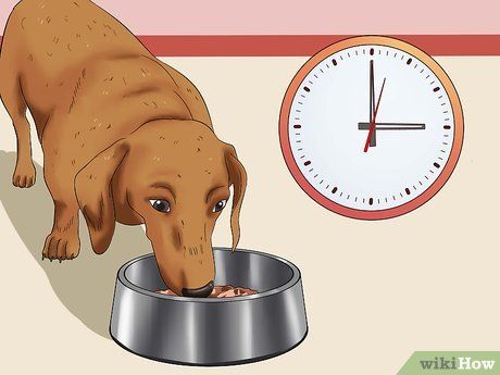 Set a time limit every time you feed your dog. Regularly set a schedule for your dog's meals and take away the food once the time is up. This will encourage your dog to eat whenever food is provided. Set your dog's food at a specific time each day and give them 15 minutes to eat. After the 15-minute period, you can remove the food and clean up any leftovers. Then, continue offering food 12 hours later and repeat the process. Do not feed your dog any food in between meals.
