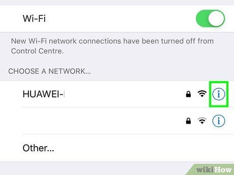 Click the ⓘ button next to the network name. This will display detailed information about the wireless network your device is connected to.