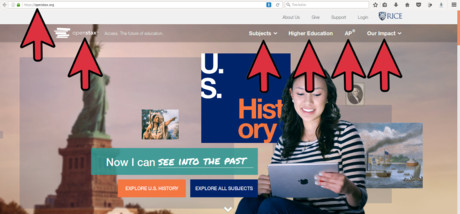 The main menu on OpenStax’s homepage.- Review a Textbook - Browse through OpenStax’s freely available textbooks online. You can read through a book or a chapter and assess its quality for yourself.