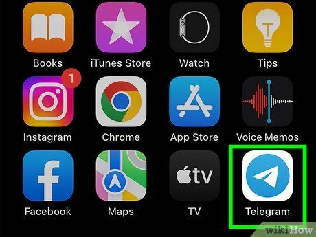 Open Telegram. The app, featuring a white paper airplane icon on a light blue background, is usually located on the home screen.