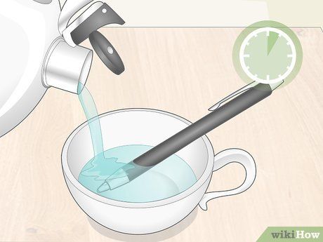 Soak the pen in hot water for 5 minutes instead of using a flame. If you're concerned about burns or damaging the pen, you can use hot water to warm the ink. Boil water in a kettle or saucepan, then pour the hot water into a cup. Immerse the pen tip in the hot water for 5 minutes, then remove it and test it by writing on paper.