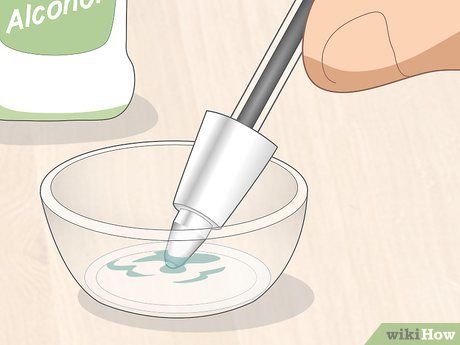 Soak the pen tip in rubbing alcohol to dissolve the dried ink clog. If part of the ink in the pen has dried, you can get it flowing again by diluting it slightly with rubbing alcohol. Pour a little alcohol into a small cup or bowl and dip the pen into it, then try writing on paper to see if it works.