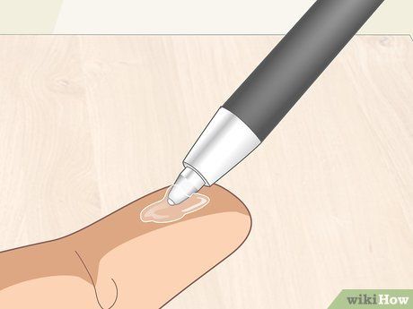 Apply a bit of saliva to the pen tip to lubricate the ballpoint. It may sound a bit odd, but saliva can act as a lubricant or a mild solvent to free the clogged tip. If you're not comfortable licking the pen, dab a little saliva on your fingertip or a tissue, then press the pen tip into it. Write on paper to check if the ink flows again.