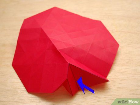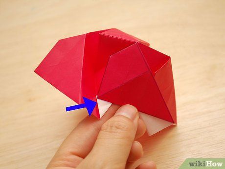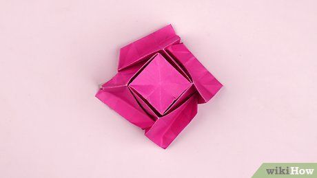 Open the corners and reverse fold. Unfold the valley folds you just made with the tips. Then, reverse fold so the tips are tucked inside the rose.