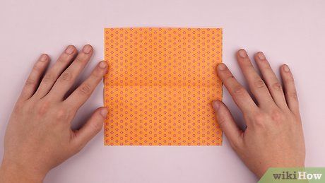 Fold the paper in half (start with the colored side facing down). Bring the bottom edge up, folding it to align perfectly with the top edge. Use your fingers to crease the fold, starting from the center and moving outward.