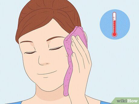 Warm Compress. Soak a towel in warm water to create a compress. Avoid using hot water, as it may irritate the skin. Gently press the towel onto the cystic acne and surrounding area, leaving it there until the towel cools. If the towel cools too quickly, repeat the process twice and perform this treatment multiple times a day.