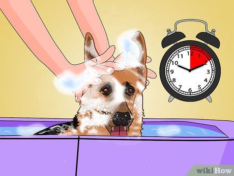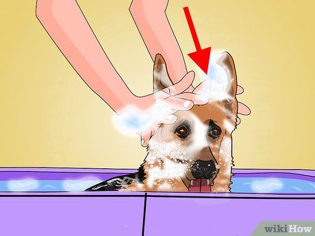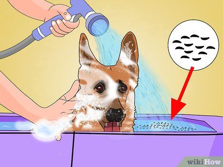 Prepare the Bathtub. Next, you'll need to prepare a warm (not hot) water bath for your pet. Make sure to add just the right amount of water, then place your dog in the tub, or use an outdoor hose if necessary.