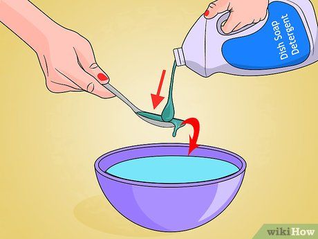 If Your Pet Can't Be Bathed, Like Cats, Mix 2-3 Teaspoons of Dish Soap in a Bowl. Add more water until the bowl is half full. Stir the mixture with a spoon or fork until it foams up.