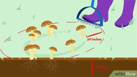 Use a lawn aerator if the mycelial mat is less than 8 cm deep. Start aerating about 60 cm outside the ring and gradually work towards the center of the circle.