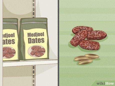 Buy ripe Medjool dates to obtain seeds. Purchase several ripe Medjool dates from a supermarket, cut them open, and remove the seeds inside. You can eat the fruit or discard it.