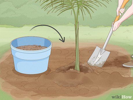 Plant the date palm in the ground if it has outgrown the pot. If your location has a warm enough climate, you can move the plant outdoors and plant it in the ground. Choose a sunny spot and dig a hole large enough for the root system. Remove the plant from the pot and place it in the hole, then cover it with soil.