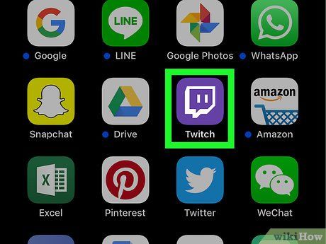 Launch the Twitch app. The app is purple with a speech bubble icon and two straight lines.