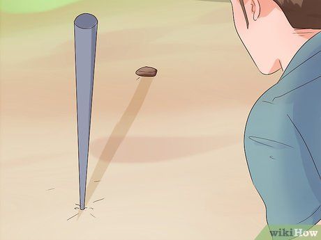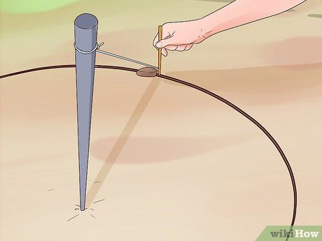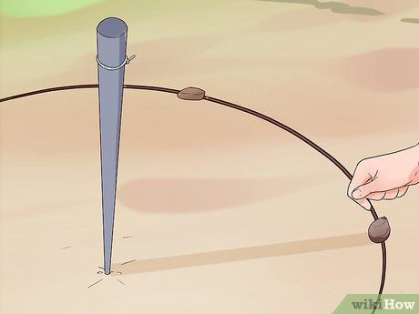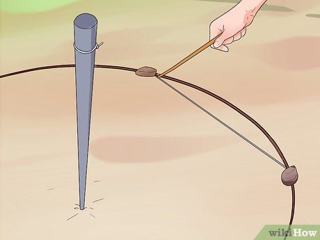 Draw a circle around the pole. Starting from the rock, use the sharp stick attached to the pole to trace a circle in the ground surrounding the pole.