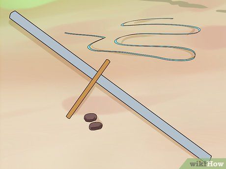 Secure the string to the stick and pole. Attach the sharp stick to one end of the string, then connect the other end to the pole. Ensure the string is long enough to reach the rock on the ground. In this method, it’s crucial that the top of the stick, which casts the shadow, aligns directly above the part of the stick planted in the ground.