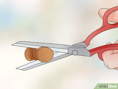 Cut a small disk of cork. Use the pliers to carefully insert the needle through the center of the cork disk. If you don’t have a cork, a leaf can be used as an alternative base for the needle.