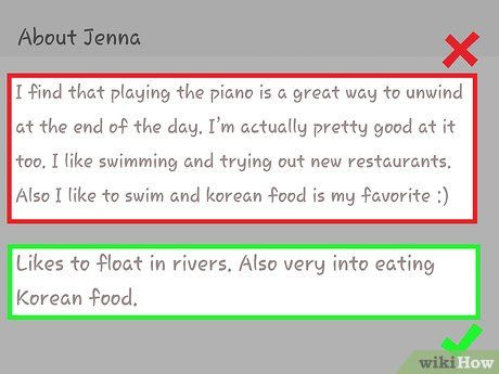 - Avoid exaggerating. Don't say you're into mountain climbing if you only do it once every few months.
