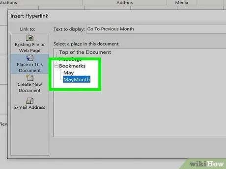 Click on Place in This Document in the left pane. This action will display a list of heading styles and bookmarks for you to choose from.
