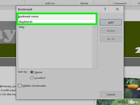 Enter a name for the bookmark. Make sure to use a specific name for easy identification. This is crucial when using multiple bookmarks or when the document is edited by several people.