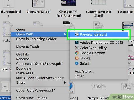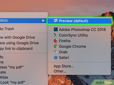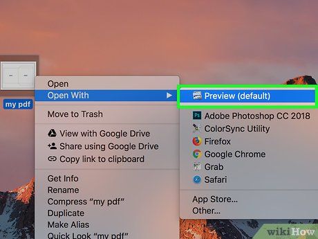 - If your default PDF reader is not Preview, right-click the file, hover over Open With, and select Preview.