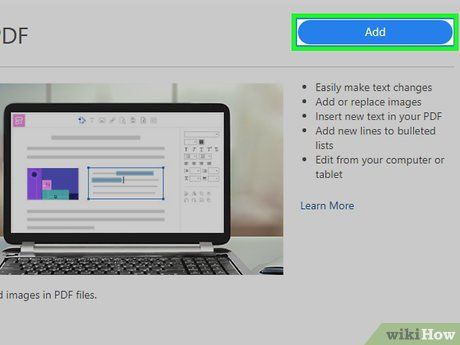 Click on the Edit PDF option from the toolbar. This option allows you to add text and images to the PDF file.