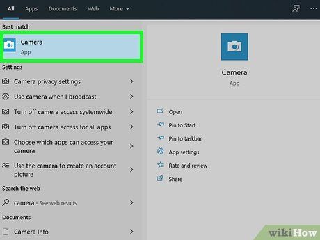 Launch the Camera. To open it quickly, use the Windows search bar by clicking the Start menu or the magnifying glass at the bottom left of the screen, type camera, then click Camera from the results. You'll see yourself on the screen.