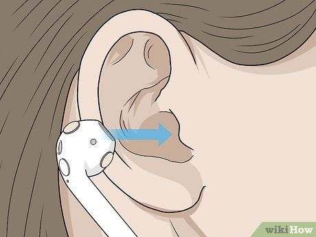 Rotate the stems so they protrude outward horizontally from your ears. Hold the stem of one AirPod and rotate it upward to secure the speaker in the ear canal. Continue rotating until the stem is pointing outward horizontally from your ear. Repeat the process with the other earbud.