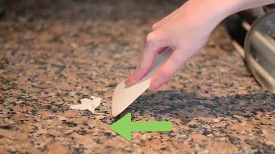 Scrape off dried debris. Use a blunt plastic tool, such as a plastic spatula, to gently scrape off dried liquids or built-up residue like grease, chewing gum, paint, or nail polish. Be careful while scraping to avoid damage to the surface.
