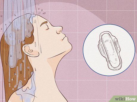 Shower regularly. Showering during your period is not only safe but also essential. It helps you feel clean, and warm water can ease menstrual cramps. Shower as usual and rinse your intimate area with warm water. After washing, use a dark towel or tissue to dry first to avoid staining, then apply a fresh pad, tampon, or menstrual cup before getting dressed.