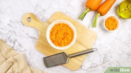 Peel and grate the carrots. Wash 2 carrots thoroughly, then peel them using a vegetable peeler and discard the peel. Use the fine side of a vegetable grater to shred the carrots into thin strips.
