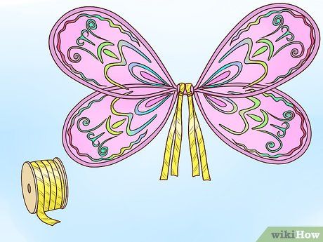 Use the tied ribbons to wear the fairy wings on your shoulders. You can tie both ends of the ribbons together and wear them like a backpack or cross the ribbons over your chest in an 'X' shape and tie them.