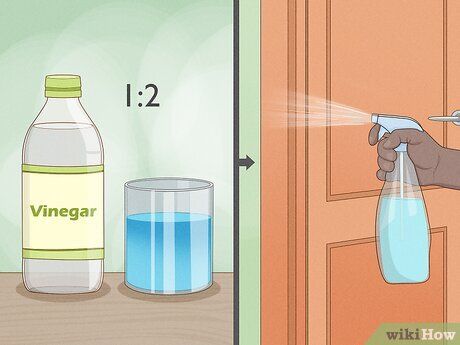 Make a vinegar solution. Combine one part vinegar with two parts water in a spray bottle and shake until mixed. Spray the vinegar solution around entryways, window frames, or other access points. For best results, reapply weekly.