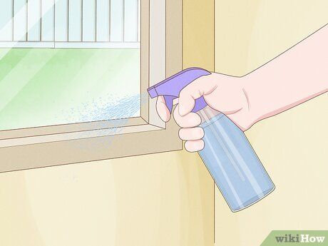 Spray around entry points. Apply the essential oil mixture to all potential entryways into your home, including window frames, door gaps, and any visible cracks. Also, spray corners where spiders tend to gather.