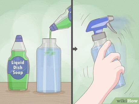 Add dish soap and shake. Pour a small amount of dish soap into the spray bottle, then close the lid and shake well to mix the solution.