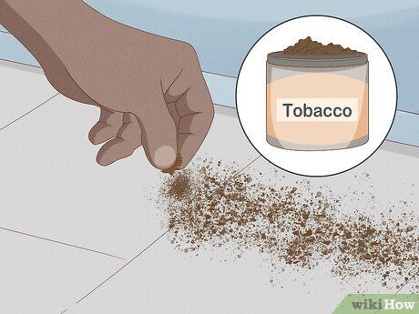 Sprinkle tobacco around the house. Spiders dislike the smell of tobacco, so scattering small bits of tobacco around your home can help keep these pests away.