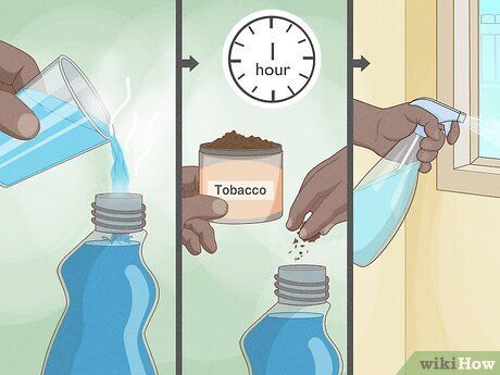 Create a tobacco solution. Fill a spray bottle almost to the top with hot water, then add a pinch of tobacco. Let the tobacco steep in the water for about an hour, then spray the solution around entry points. The strong smell of tobacco will repel unwanted spiders.