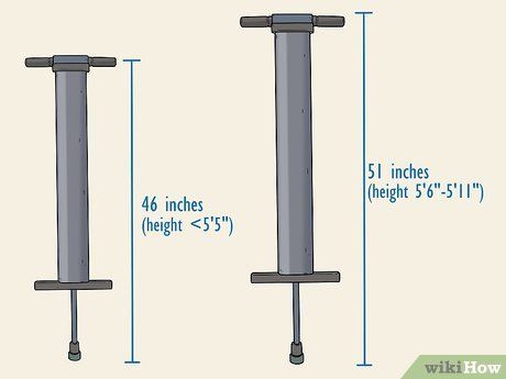 Select the correct size pogo stick. If you're under 5'5", choose a 46-inch pogo stick. For those between 5'6" and 5'11", go with a 51-inch pogo stick. If you're 6' or taller, opt for a pogo stick that is at least 56 inches in height.