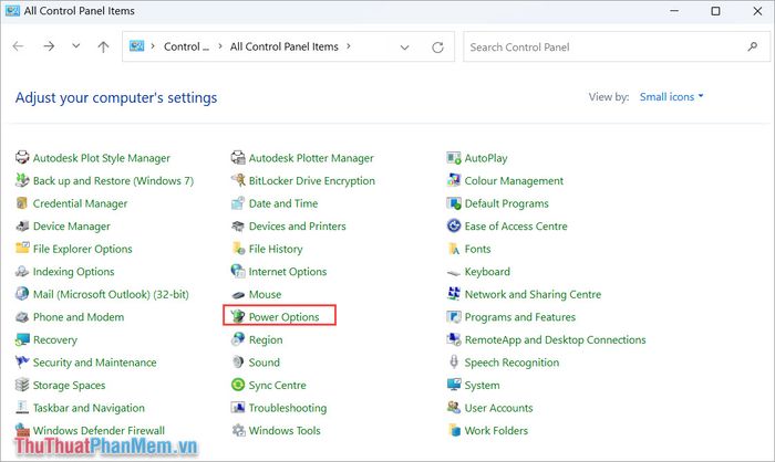 Step 2: In the Control Panel, select the Power Options. If you can't find Power Options, change the View by setting to Small icons.