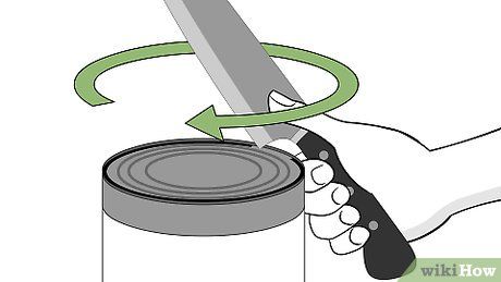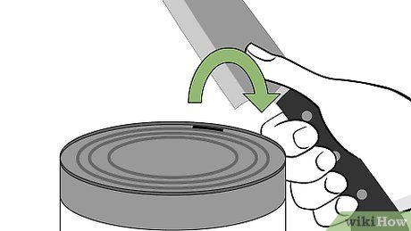 Place the handle of the knife (the widest part of the blade, opposite the tip) on the inner edge of the can lid.