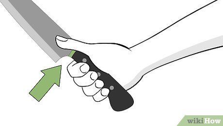 Grip the knife firmly by the handle. Hold the knife tightly, with your fingers on the handle, ensuring a safe distance from the blade.