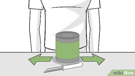 Place the can on a stable surface. If you have a table about waist-height, that’s ideal. Do not place the can in your lap or between your legs, as the knife may slip and cause injury.