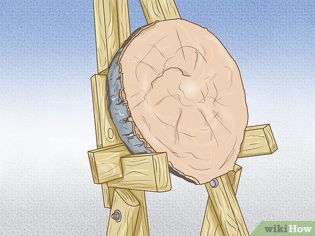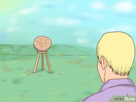 Get a solid target. You need something made of wood for the tomahawk to stick into, ideally dry wood that won’t be damaged by the repeated impacts. Experienced throwers often use a piece of a dead tree stump, typically 4 to 6 inches (10.2 to 15.2 cm) thick, mounted on a sturdy stand.