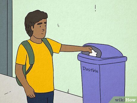 Dispose of trash in the bin. It may seem insignificant if a candy wrapper falls out of your pocket, but over time, litter accumulates and makes the school look untidy. If you see someone dropping something, pick it up and throw it in the trash.