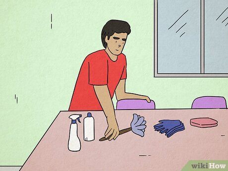 Practice safe cleaning methods. When cleaning, ensure you carefully read and follow all instructions on cleaning products. Wear rubber gloves when handling chemicals like bleach.